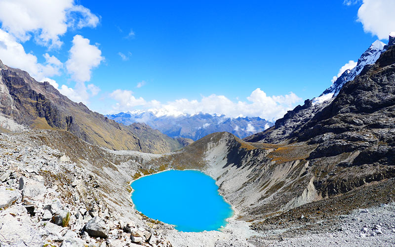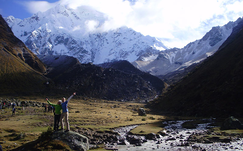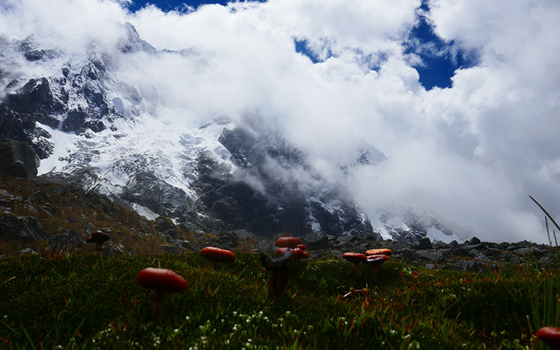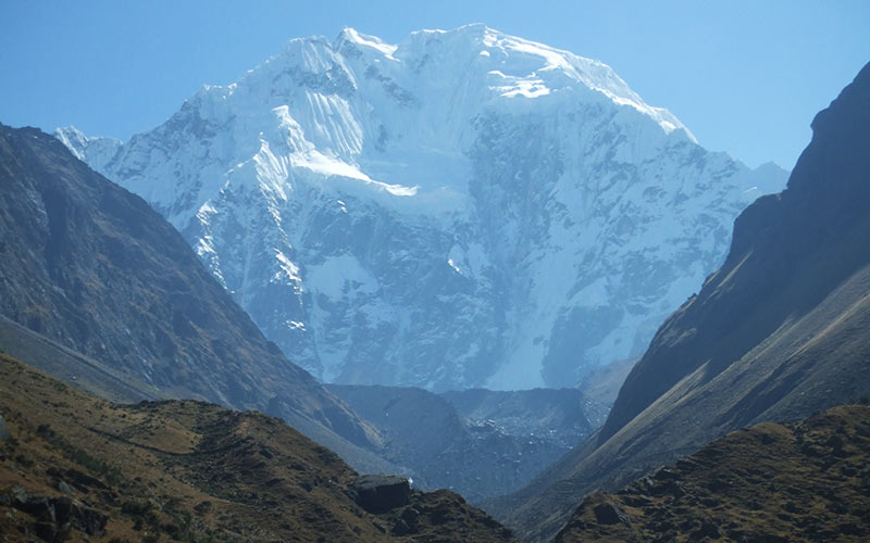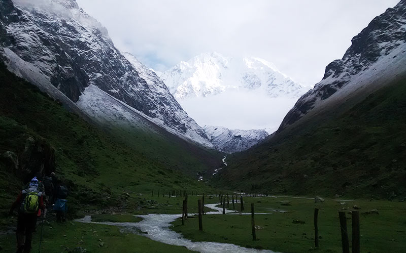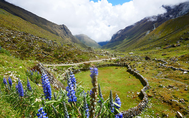 Today’s trek begins at the small village of Challacancha high above the Rio Blanco Valley. Following a wide, well established track we will gently make our way up the side of the valley covering a distance of about 12km /7.9 miles and climbing 1200m /3937ft. The views throughout the day are fantastic, all around us are verdant green mountains, along the path are a wide variety of native plants and flowers with birds flitting in and out and towards the end of the day we’ll see the snow-capped peaks of Humantay and Salkantay (the Savage) looming high above us.