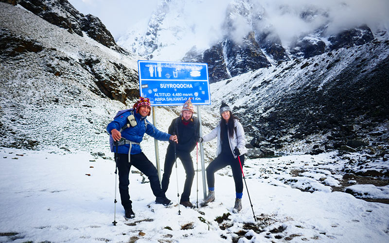 Today is the longest and hardest day of the trek but also the most beautiful. The scenery throughout the day goes from one extreme to another; starting from the high Puna covered in Ichu grass we make our way up and over Salkantay pass where everything is rock and ice and then descend the far side down to the warm and lush cloud forest below. Along the way we’ll see a variety of wildlife from the small finches that scrape by at the higher altitudes to hummingbirds and toucans in the cloud forest, there is also a chance to see Andean Fox, White Tailed Deer and Viscacha (rabbit-like Chinchillas).
