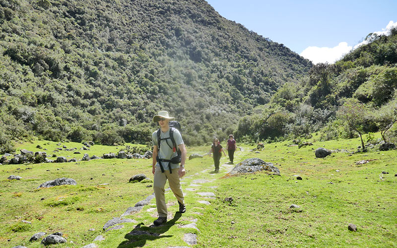 Leaving our campsite at Pilaupata we will set out for the high pass. The path winds its way up through lush vegetation for about 3 and a half hours during which you’ll get to learn about the many native plants and flowers that thrive in this area. From the pass we’ll begin our descent to our campsite at Rak’achaca (3570m / 11712 ft.) following original Inca pathways.